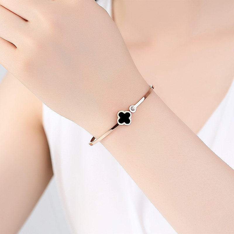 日韩版镀18k玫瑰金四叶草手镯女开口手环钛钢饰品送女友闺蜜礼物