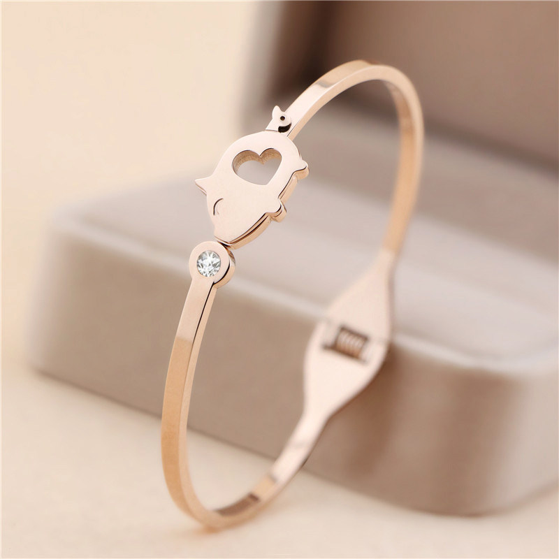 生肖金猪钛钢18k玫瑰金chic手镯女简约小清新网红小众设计