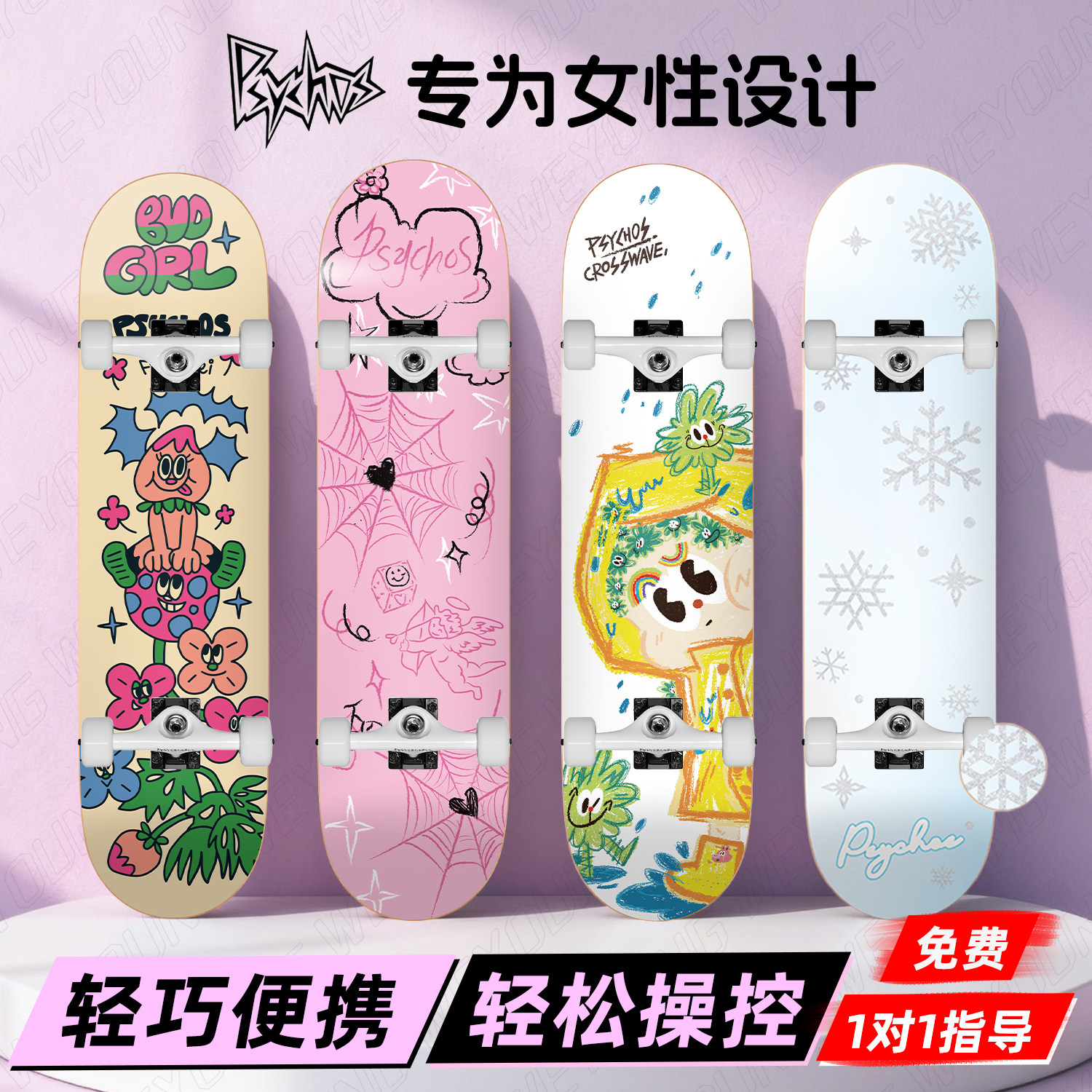 PSYCHOS 沸点滑板专业男女生初学者刷街动作双翘成人儿童涂鸦系列