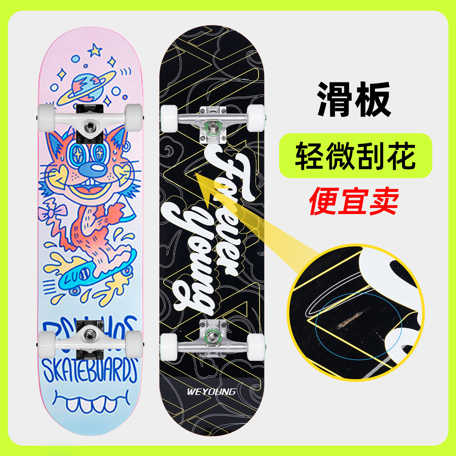 Weyoung滑板瑕疵福袋Psychos成人儿童初学者双翘陆冲专业板