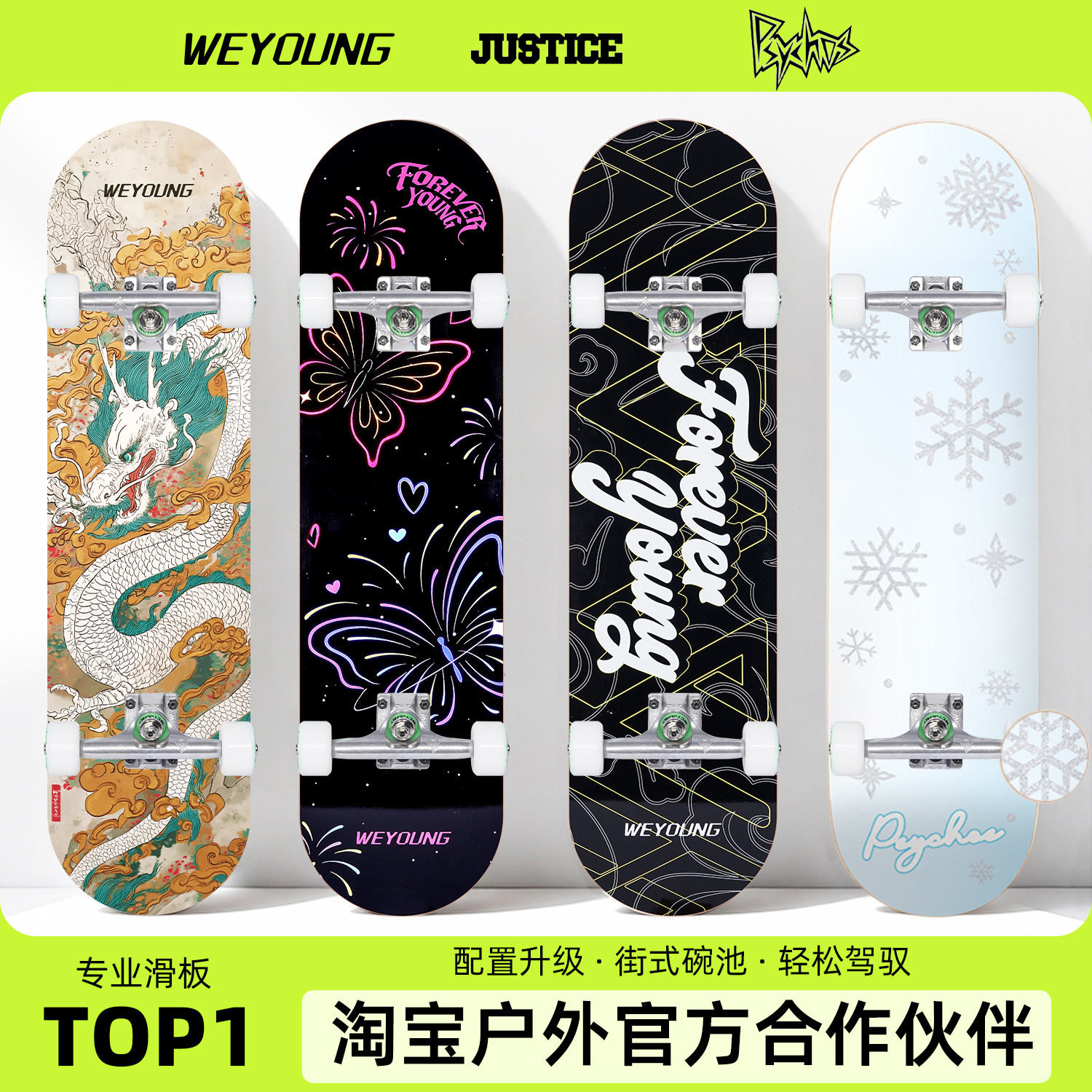 Weyoung滑板成人儿童青少年女生初学者沸点专业板Justice双翘新款