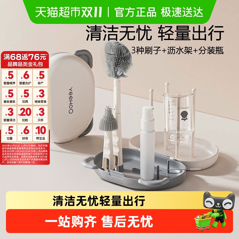 英氏婴儿硅胶奶瓶刷便携奶嘴刷宝宝清洗刷清洁刷旅行装沥水架套装