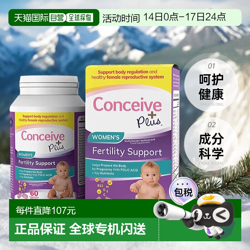 Conceive+Plus女性备孕叶酸片提高囊卵巢卵子多卵泡60粒补充剂