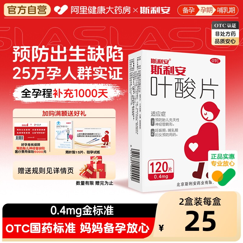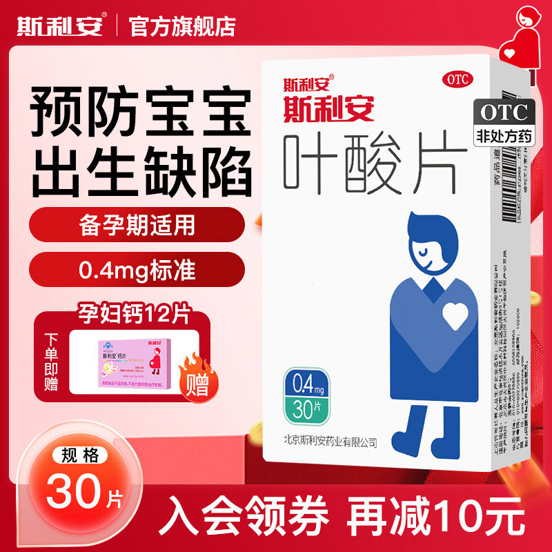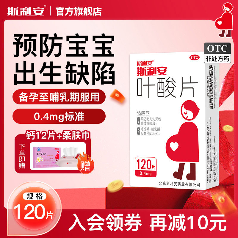 斯利安正品官方0.4mg叶酸片120片女士备孕期早期孕妇预防出生缺陷