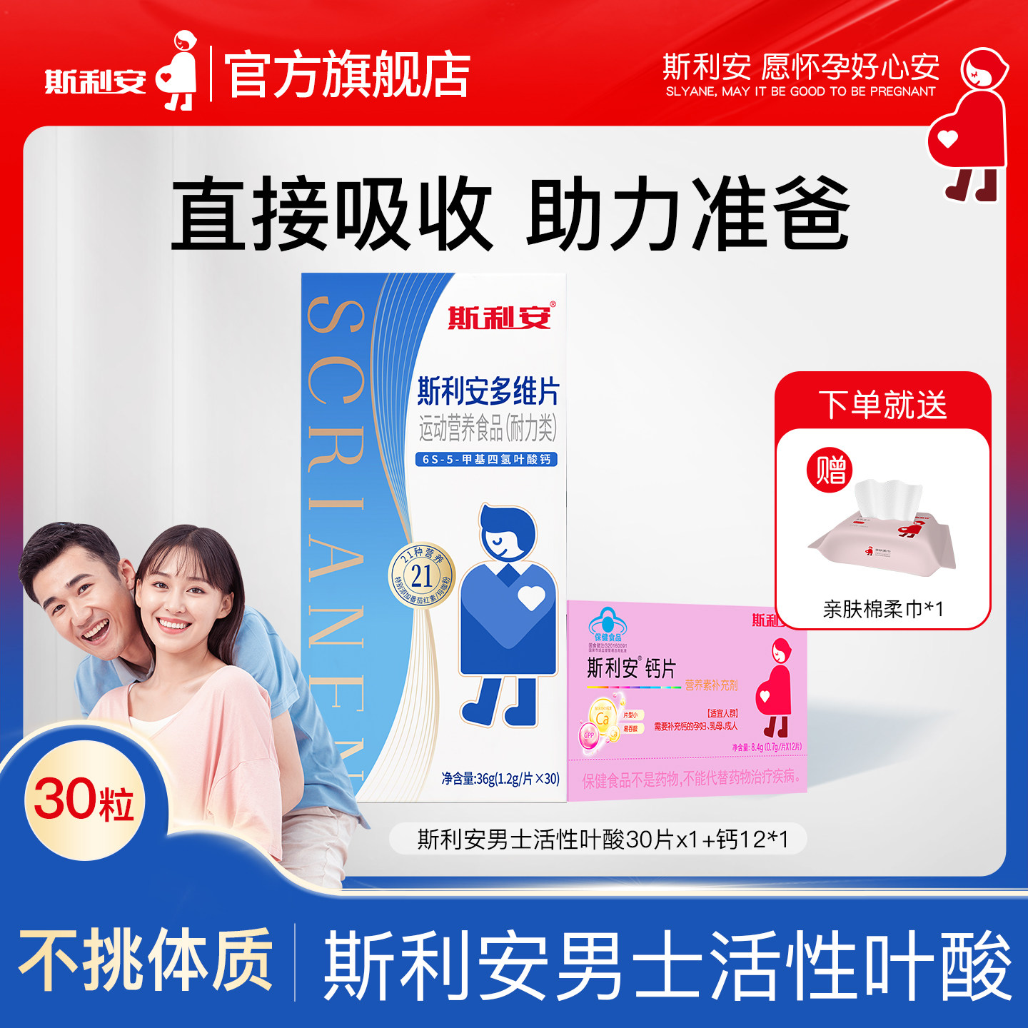 【准爸爸】斯利安男士备孕活性叶酸多维复合维生素男士专用30片