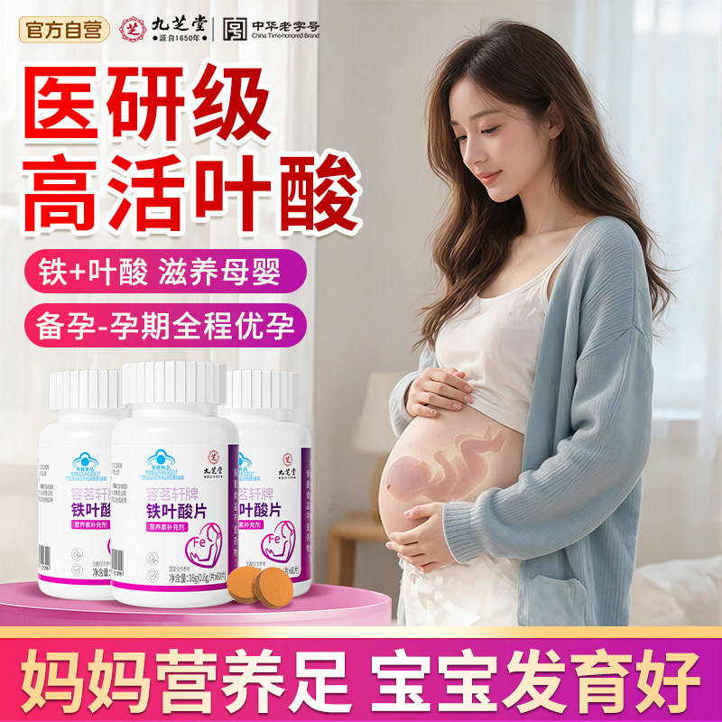 九芝堂铁叶酸片白发男士孕妇备孕中老年人维生素B6黑发营养支持