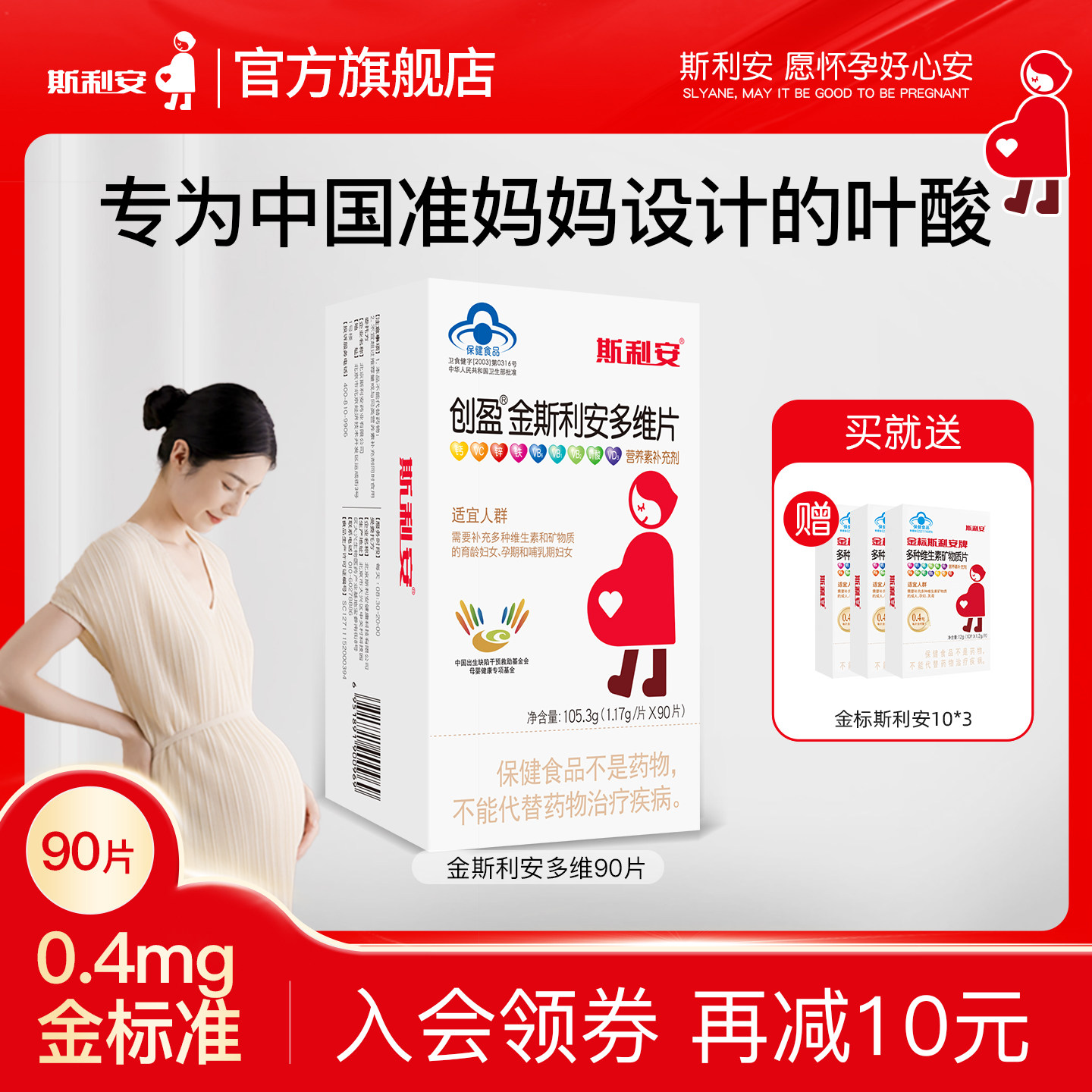 斯利安叶酸孕妇叶酸片女士金斯利安多维片备孕孕期哺乳复合维生素