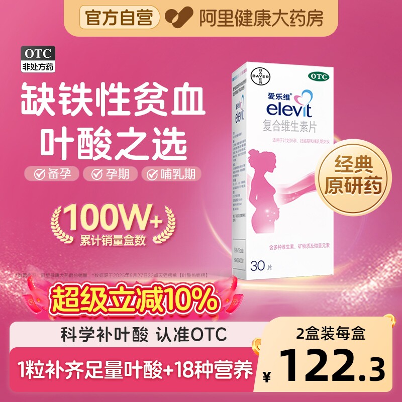 爱乐维复合维生素片elevit叶酸多维孕妇孕期旗舰店补铁贫血备孕