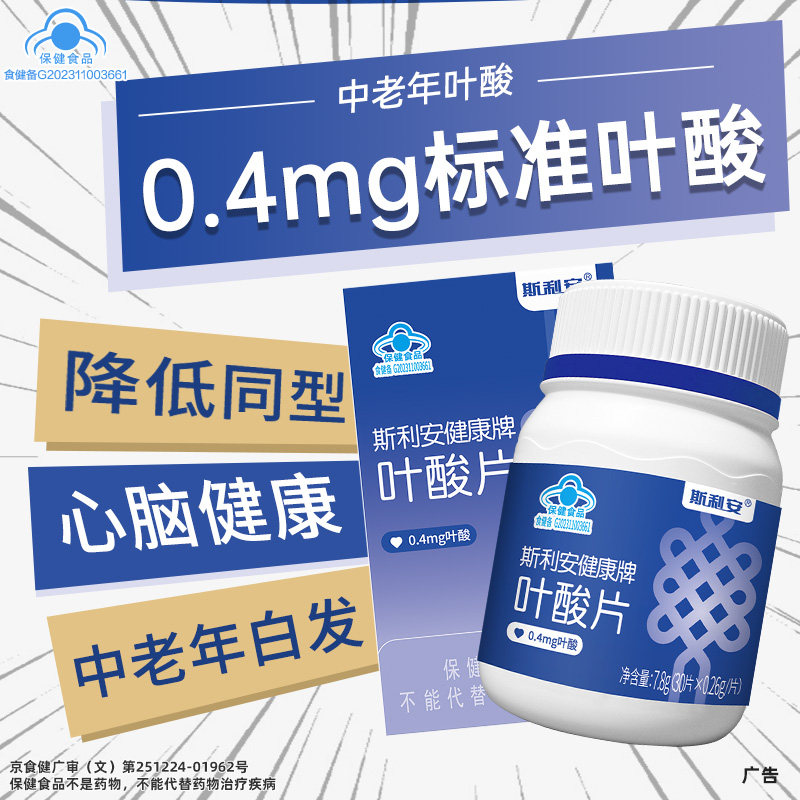 斯利安中老年叶酸片0.4mg孕妇孕早期哺乳正品官方旗舰店备孕男士