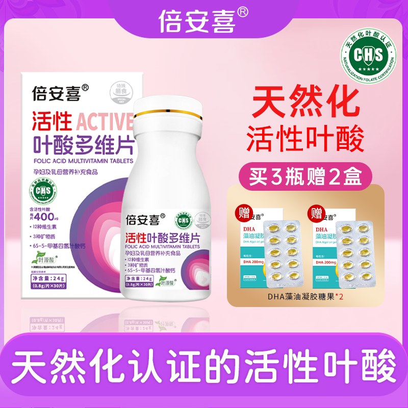 倍安喜活性叶酸多维片孕妇早中晚期备孕复合叶酸多维片正品旗舰店