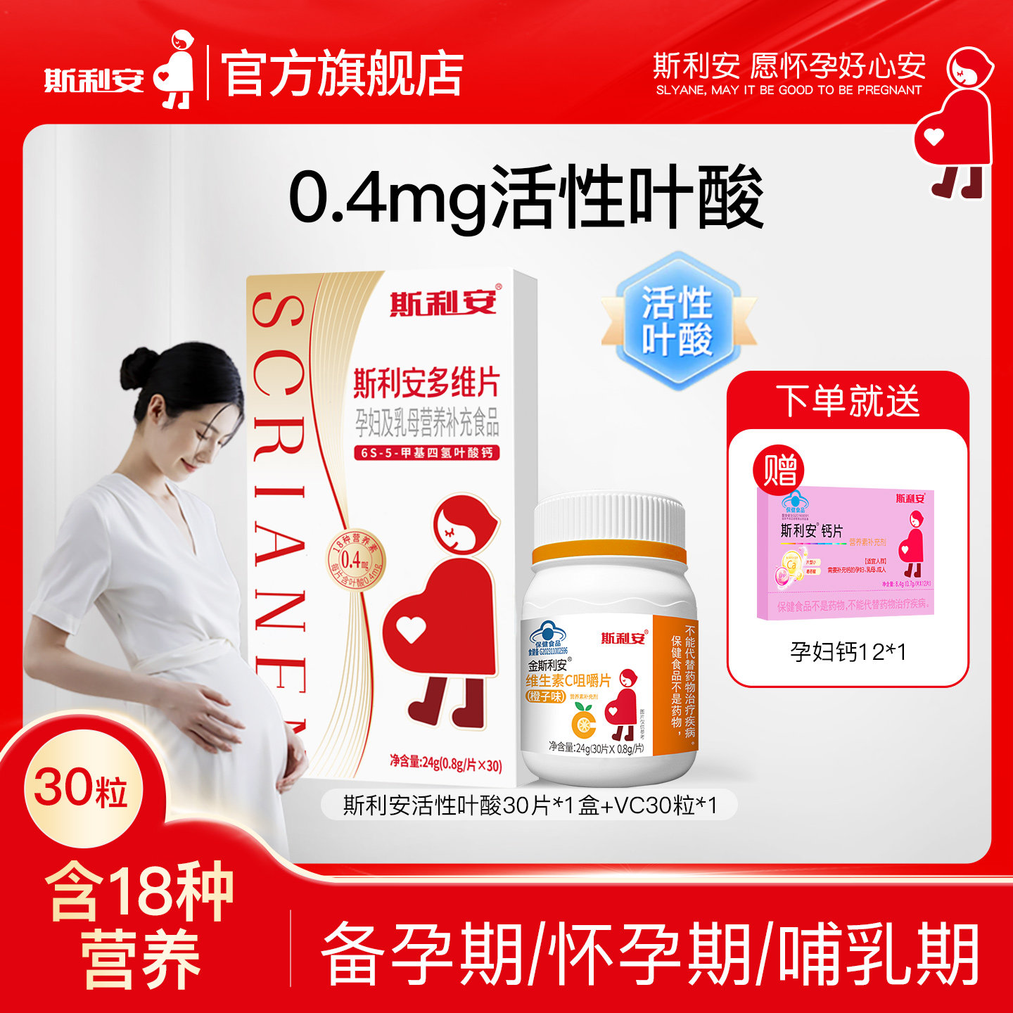 斯利安多维片活性叶酸孕妇备孕孕期复合维生素女士多种营养30片