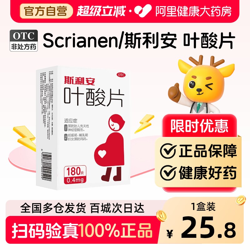 斯利安孕妇叶酸片孕早期0.4mg叶酸备孕预防出生缺陷官方正品180片