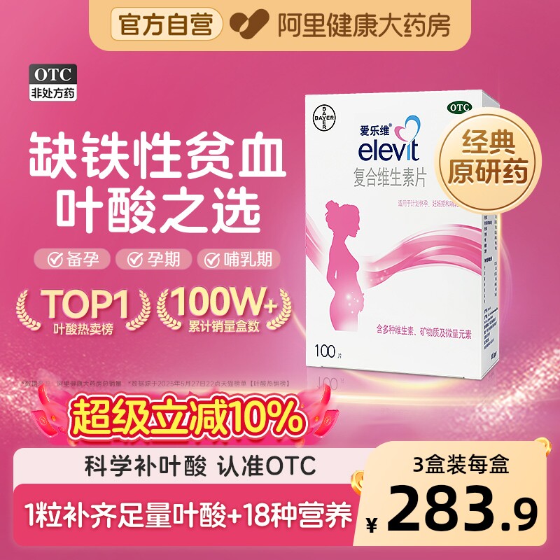 爱乐维复合维生素片ELEVIT叶酸多维孕妇孕期正品药房补铁备孕拜耳