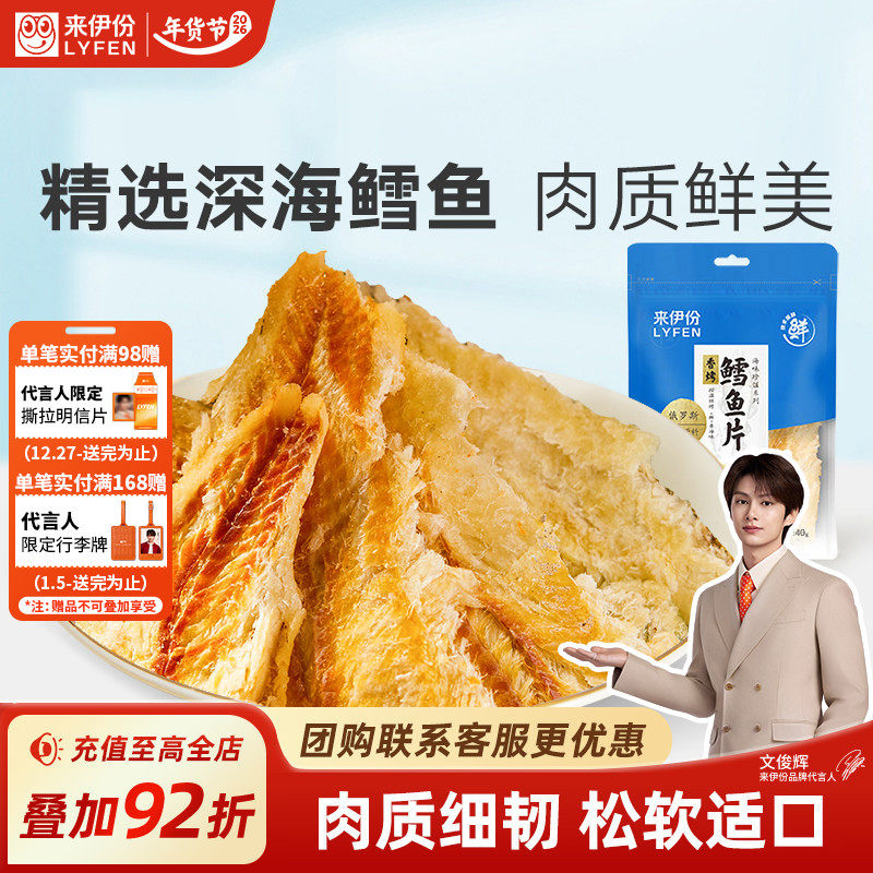 来伊份香烤鳕鱼片40g 海鲜小吃零食干货手撕鱼干烤鱼片休闲零食