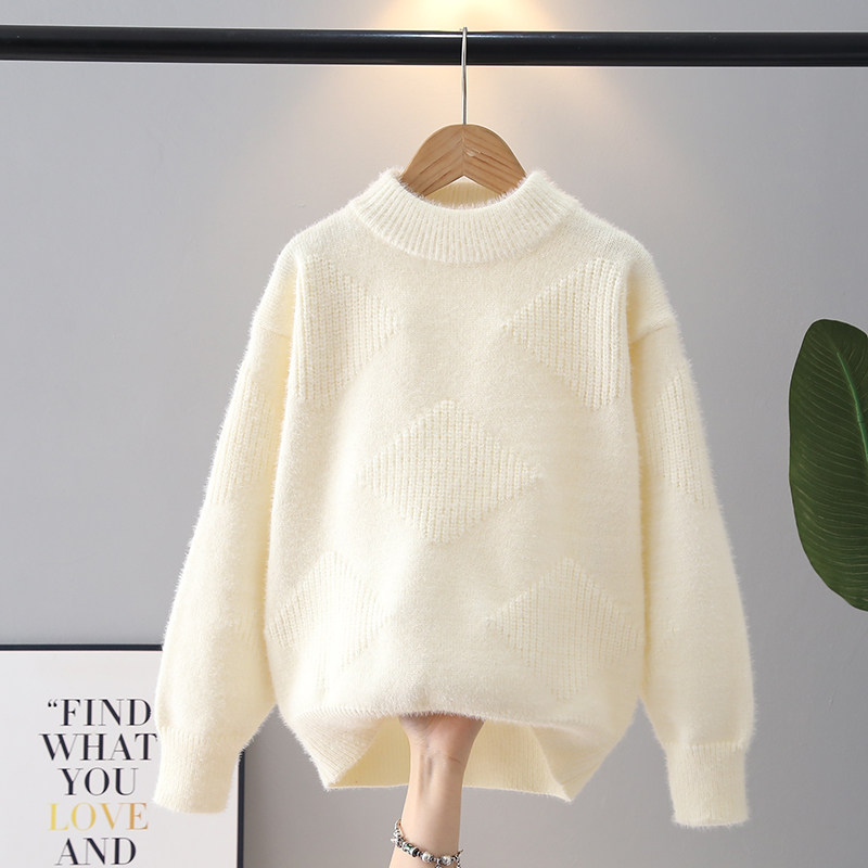- 秋冬韩版新款女士毛衣套头中长款前短后长宽松大码针织衫打底上衣