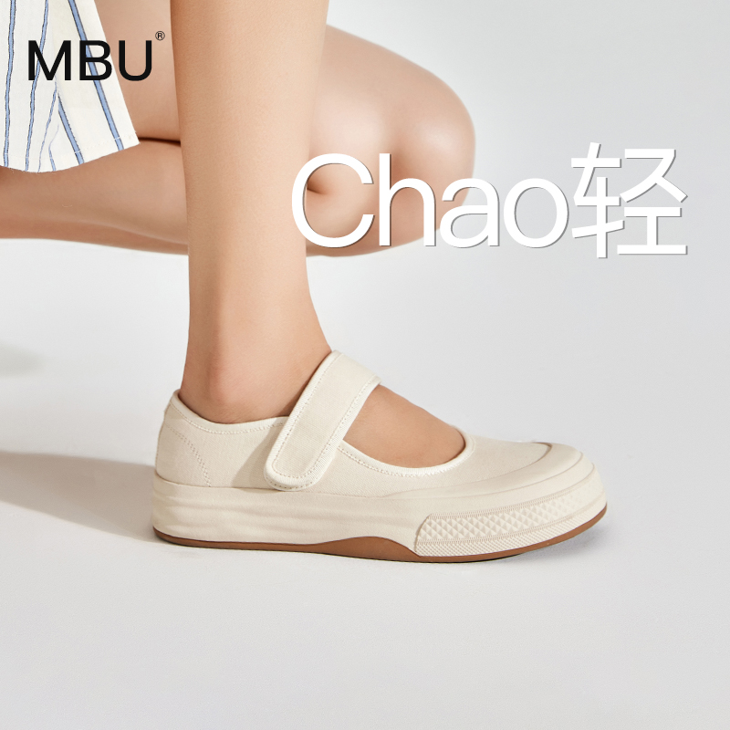 MBU 魔术贴玛丽珍帆布鞋女2025年秋新款护士鞋厚底板鞋浅口小白鞋