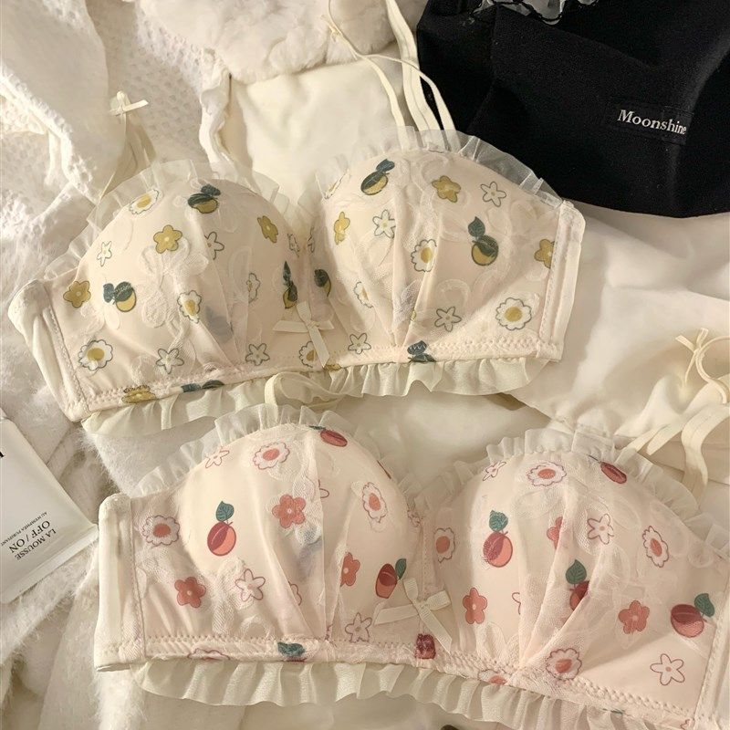 日系甜美纯欲风碎花内衣少女小胸聚拢无钢圈上托防下垂文胸罩套装