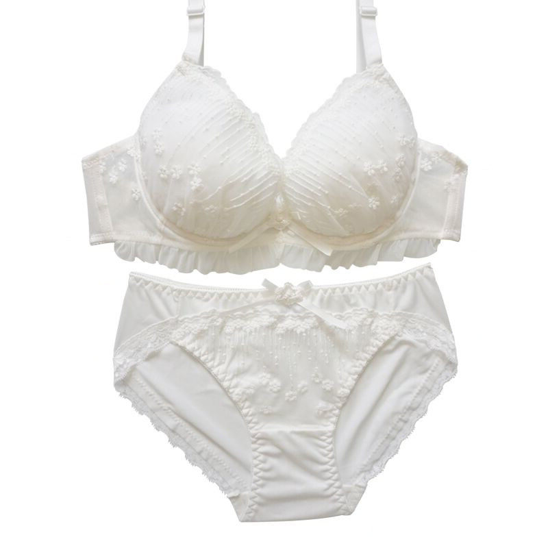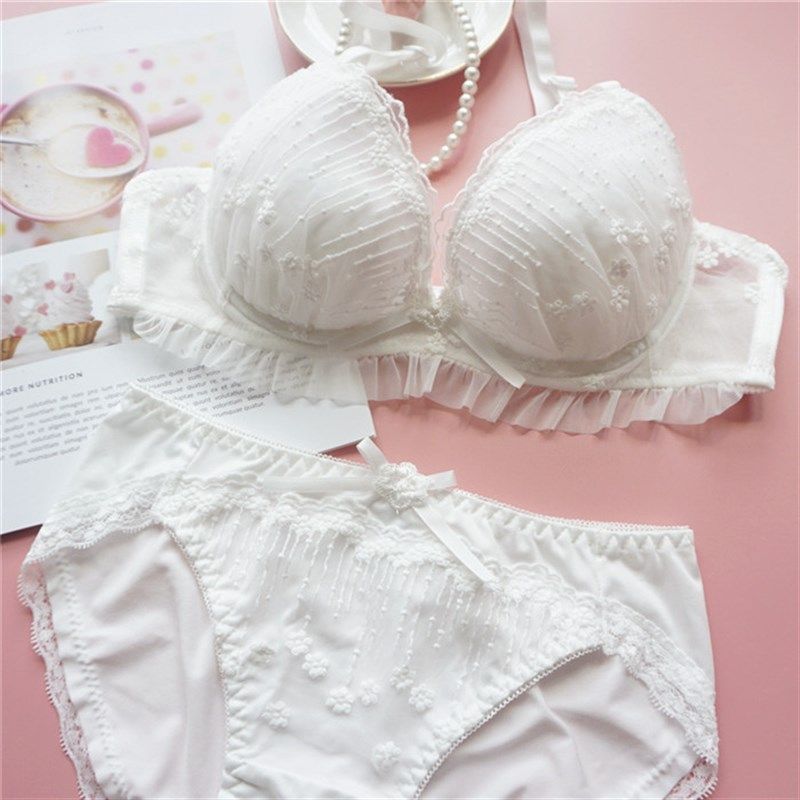 日系少女刺绣蕾丝内衣套装小胸聚拢平胸专用不空杯无钢圈文胸套装