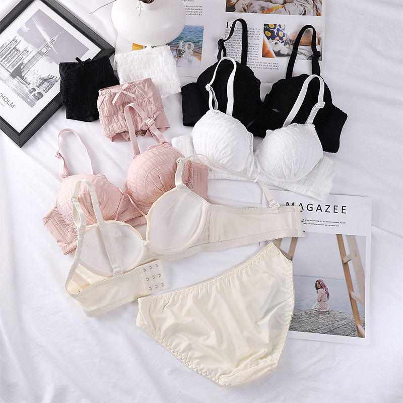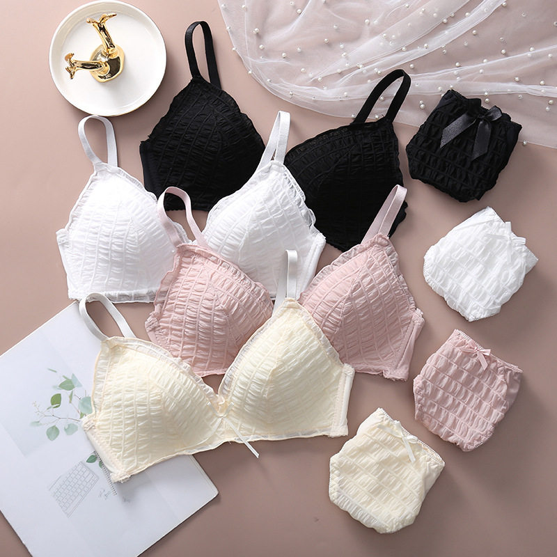 2021新款无钢圈日系少女文胸套装聚拢性感内衣套装蝴蝶结光面文胸