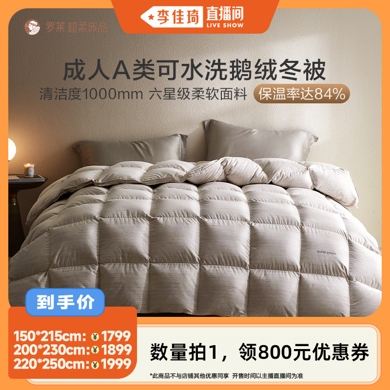 【李佳琦直播间】罗莱家纺鹅绒被可水洗A类阻螨加厚蓬松保暖冬被