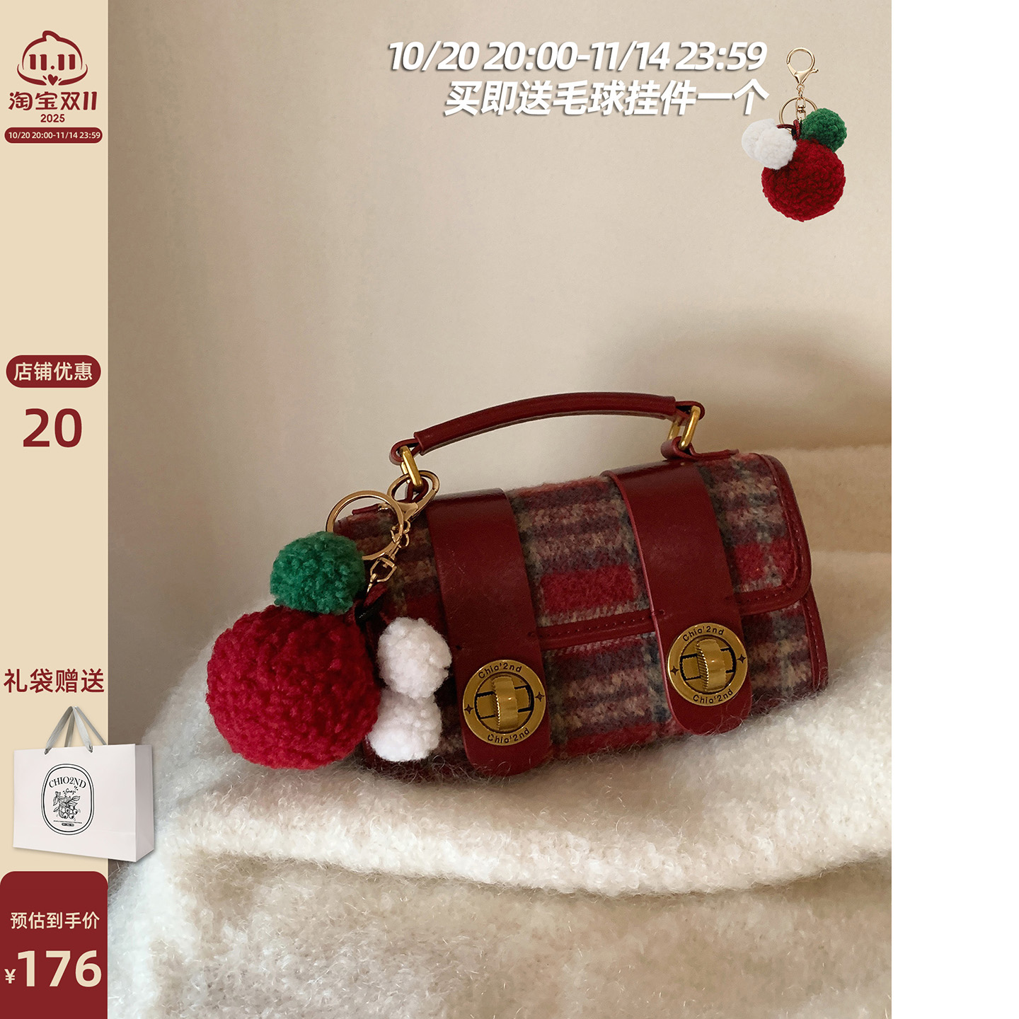 南风Chio2nd 洋红莓果手提包包女春夏剑桥包格纹婚包单肩斜挎小包