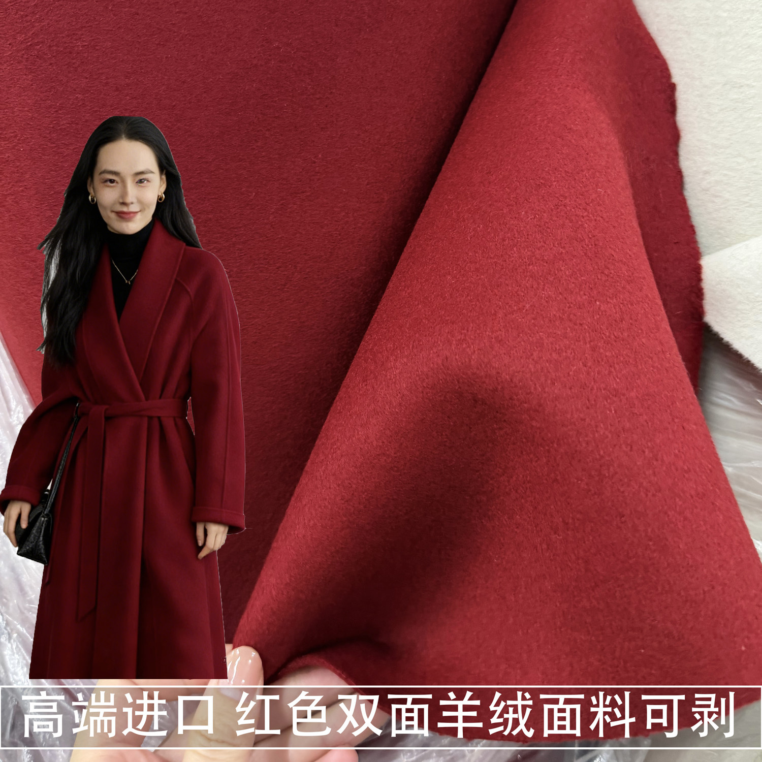胡胡布店高品质双面羊绒双层羊绒大红色大衣布料1.5米宽189元一米