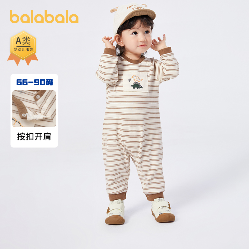 巴拉巴拉婴儿连体衣新生儿哈衣爬服新款秋装宝宝条纹外出服童装潮