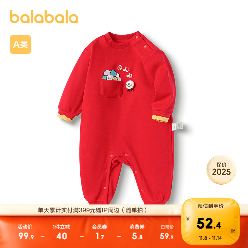巴拉巴拉婴儿连体衣新生儿衣服初生宝宝红色满月礼服2025儿童秋装