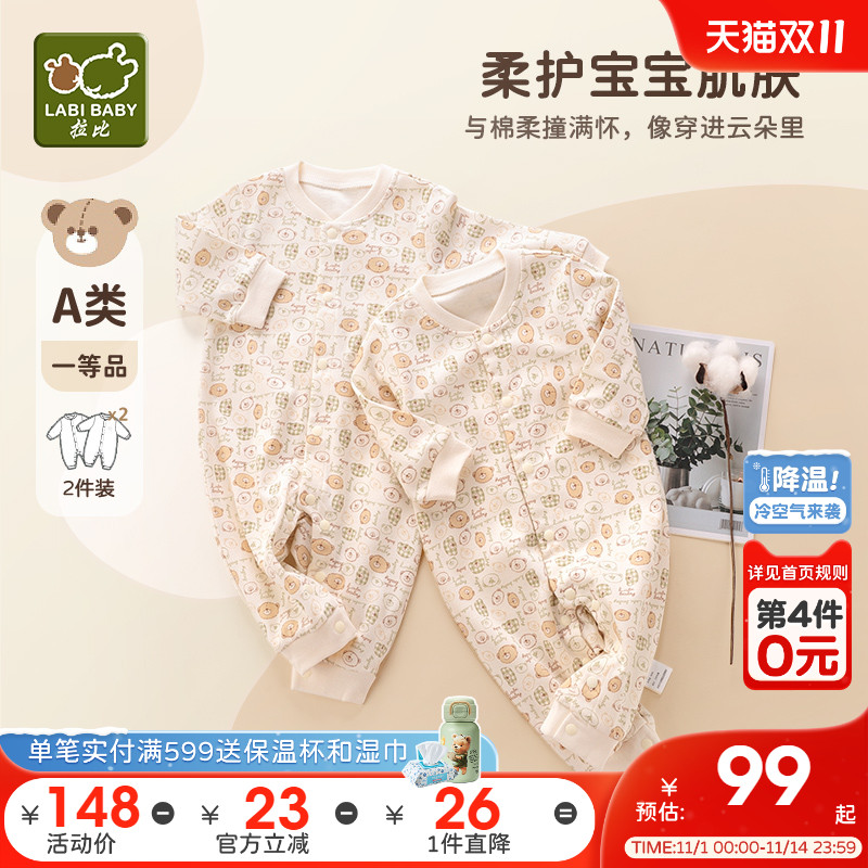 仅80码!拉比婴儿连体衣新生儿哈衣爬爬服男女宝宝连体睡衣2件装