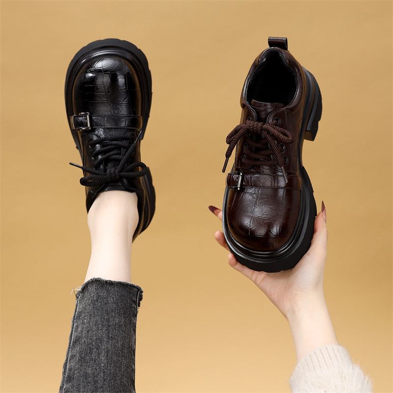松糕厚底小皮鞋女2025年秋季新款复古百搭英伦风增高圆头系带单鞋