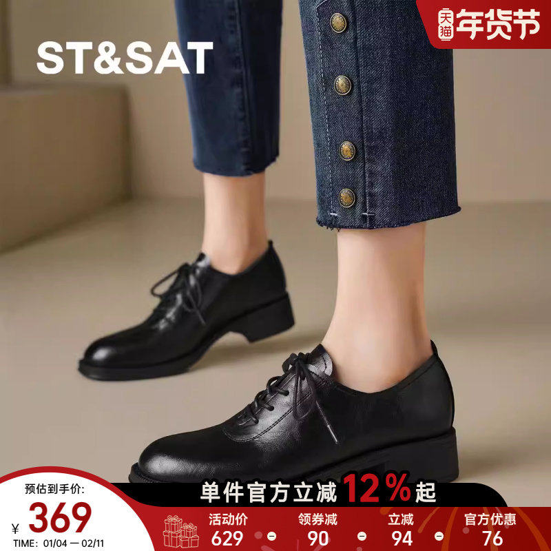 星期六厚底乐福鞋女2025新款秋季英伦风小皮鞋系带圆头复古学院风
