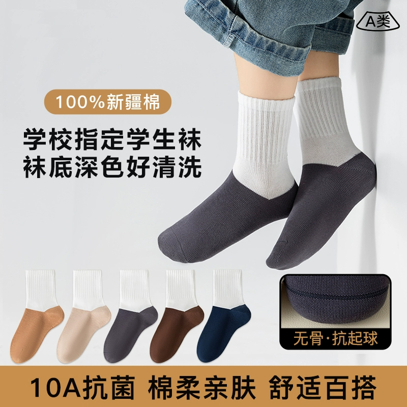 儿童袜子纯棉a类7a抗菌防臭吸汗少年短袜大童无骨秋冬学生中筒袜