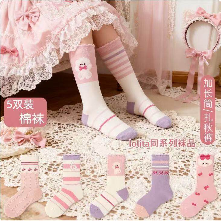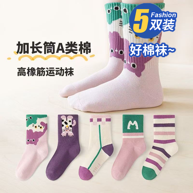 女童袜子冬季新款纯棉袜女孩学生中筒袜无骨大童袜儿童春秋运动袜