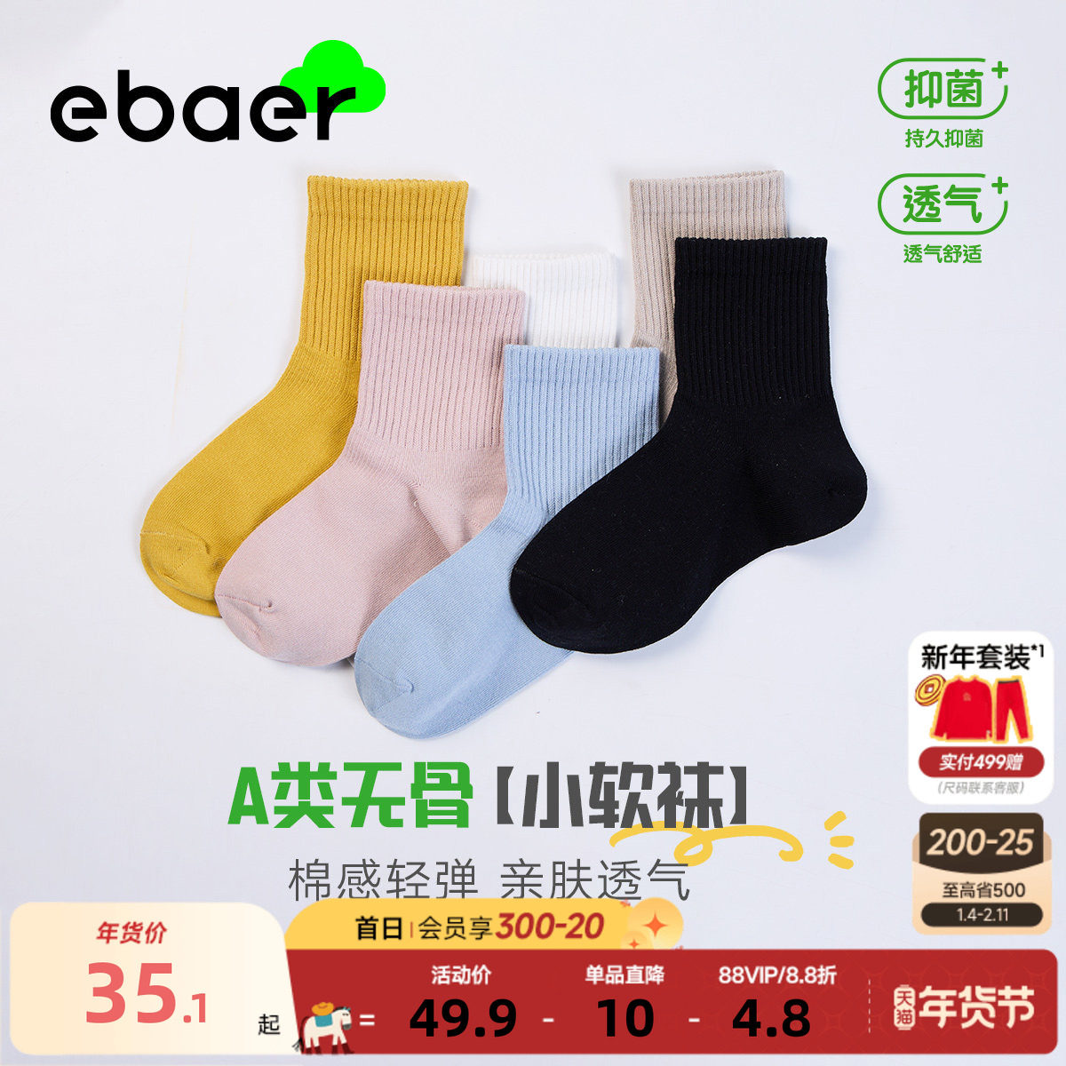 EBAER儿童袜子春秋款中大童学生中筒袜男孩2025新款女童无骨棉袜