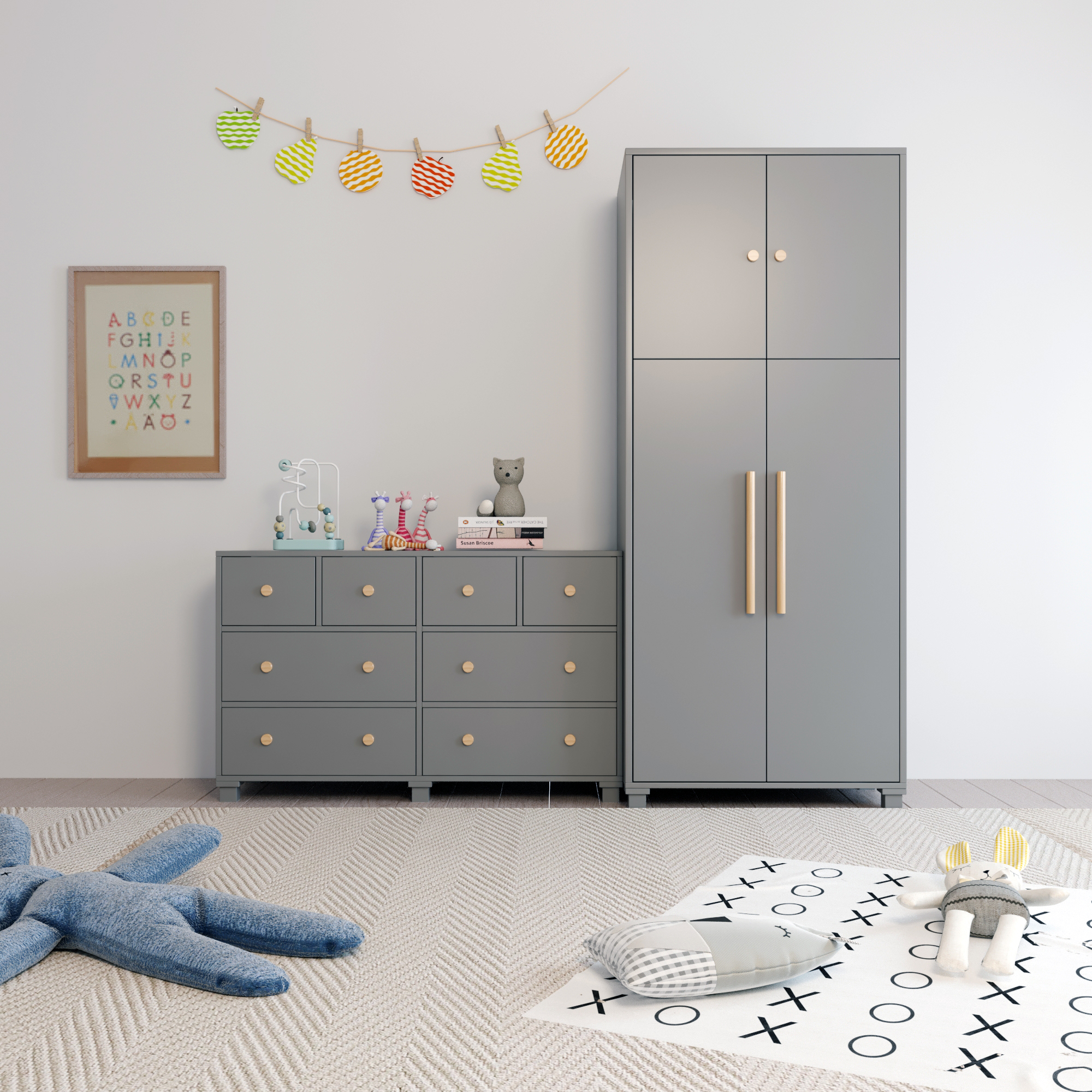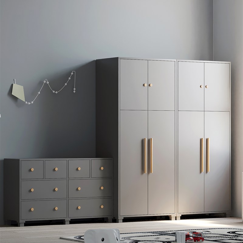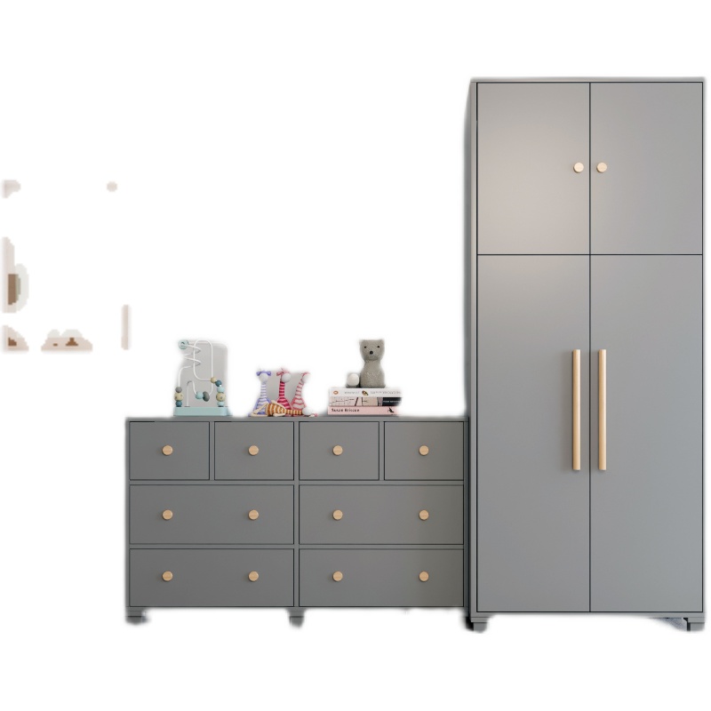 可比熊实木儿童衣柜灰色儿童房家具套装婴儿衣柜宝宝小衣橱五斗柜