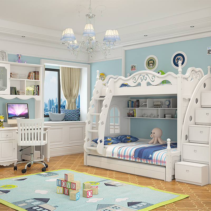 儿童床上下床双层床公主带书桌衣柜组合儿童房家具组合套装上下铺