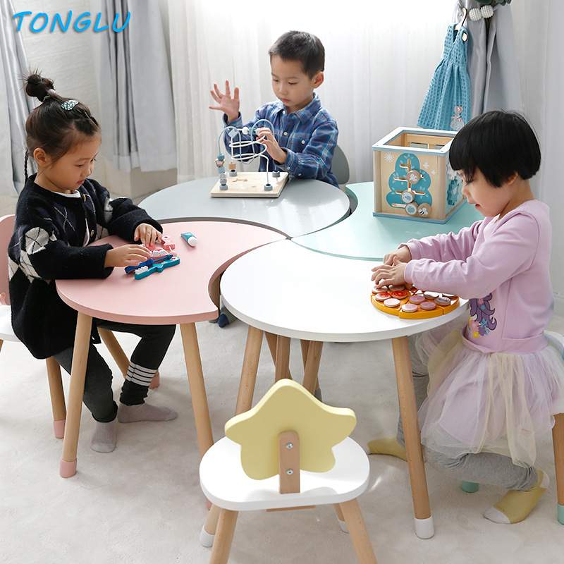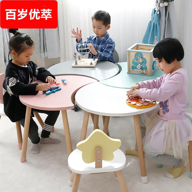 ins简约北欧风家具儿童房月亮桌椅套装幼儿园早教木制学习桌椅