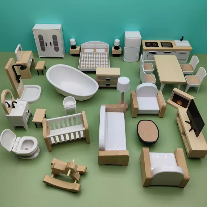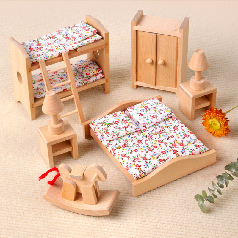 跨境新品木制小家具儿童过家家仿真家居套装娃娃房场景迷你小玩具