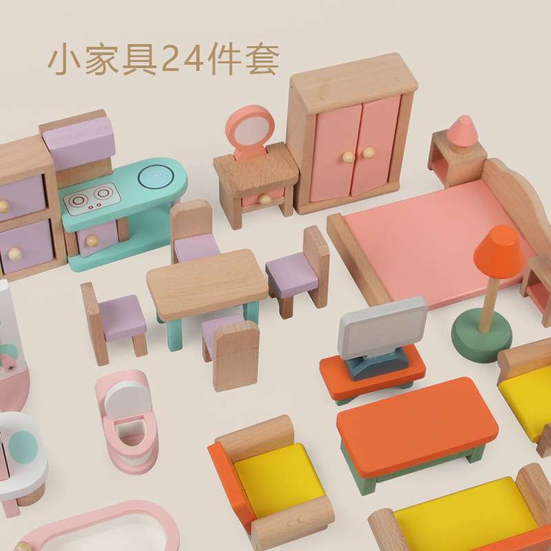 儿童木制DIY过家家玩具屋仿真益智房间别墅男女模拟家具娃娃套装