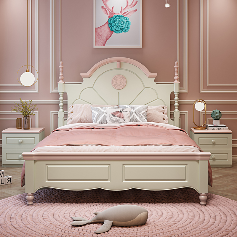 儿童床女孩粉色公主床1.5m实木单人床少女梦幻儿童房家具组合套装