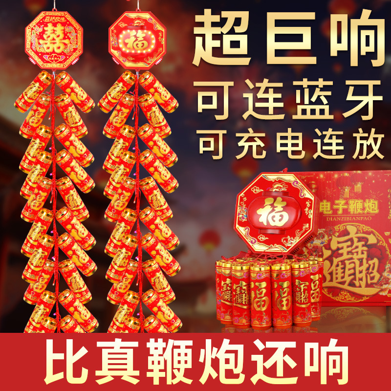 电子鞭炮鞕炮带超响闪光家用春节婚庆火鞭爆结婚爆竹室外乔迁炮仗