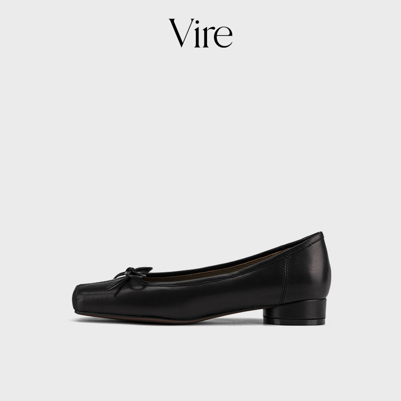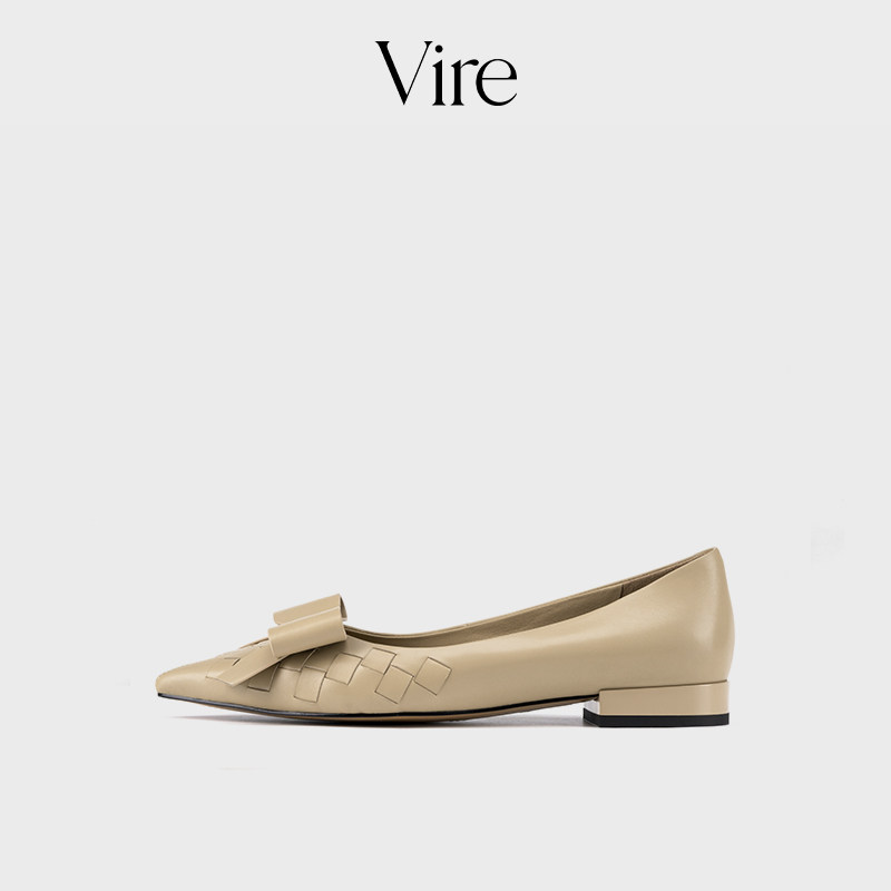 VIRE/923380新款法式优雅气质系绳蝴蝶结时尚牛皮真皮低跟单鞋B