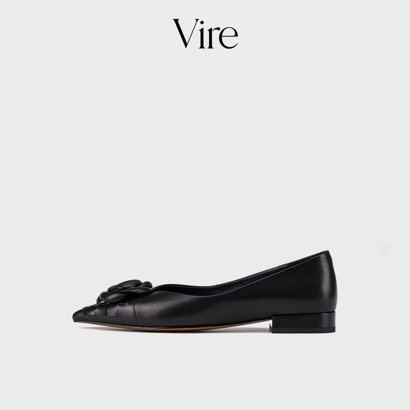 VIRE/953358舒适时尚百搭低跟方头山茶花平底鞋单鞋B