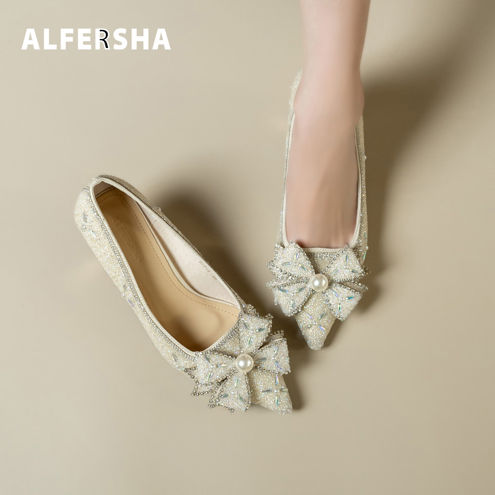 ALFERSHA法式珍珠蝴蝶结尖头单鞋女2026新款名媛风不累脚