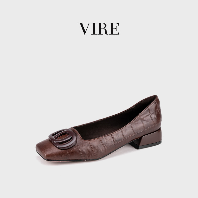 VIRE/11839 法式优雅超气质小众 低跟浅口单鞋女时尚羊皮真皮瓢鞋