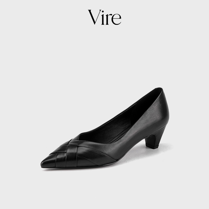 VIRE/225810时尚真皮女鞋尖头单鞋低跟2cm气质单鞋女百搭小皮鞋女