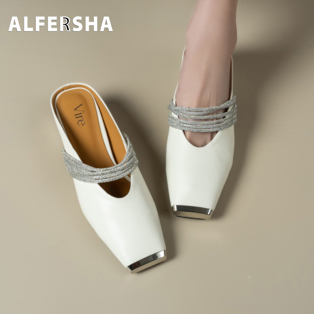 ALFERSHA法式风水钻方头一字带凉鞋女网红气质露趾高跟拖鞋