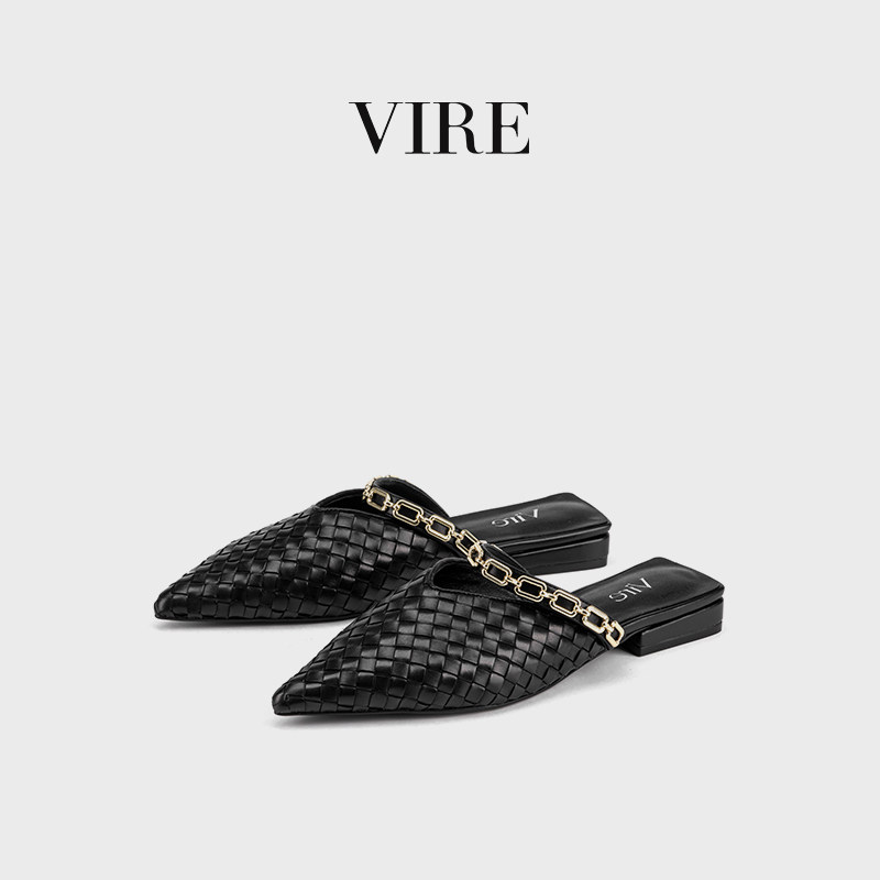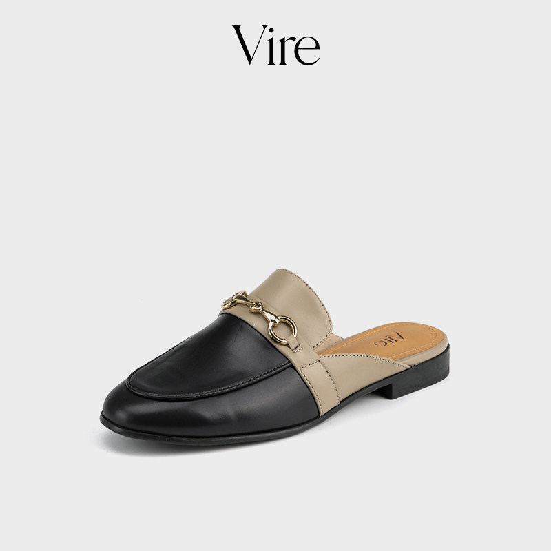 VIRE/953322时尚气质优雅休闲舒适牛皮真皮低方跟百搭包头半拖D