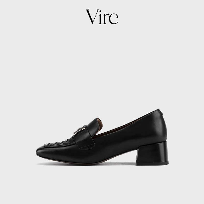 VIRE/2619382新款法式时尚编制浅口中跟鞋百搭方头气质粗跟单鞋D