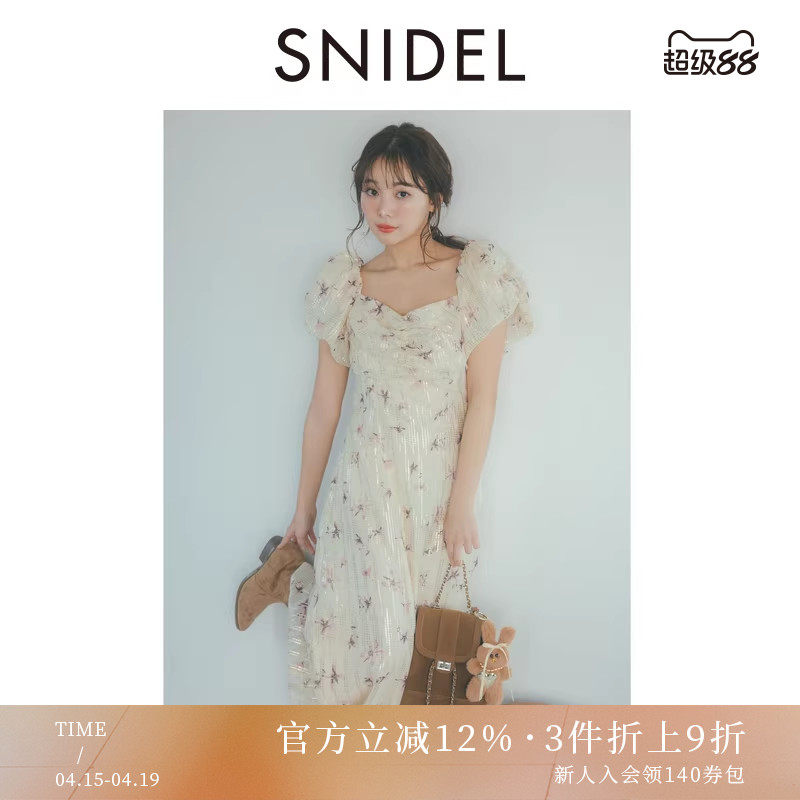 SNIDEL春夏款优雅淑女泡泡袖亮片雪纺印花连衣裙SWFO251088